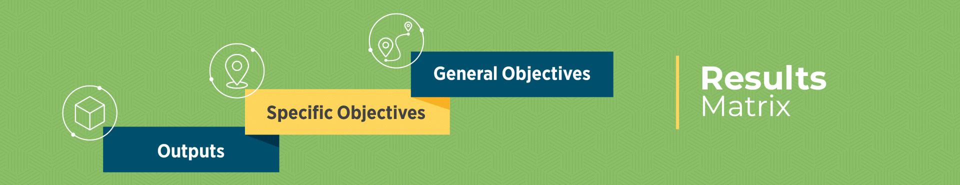 La matriz de resultados es una representación esquemática de la relación de los objetivos generales y específicos de un proyecto. Enumera indicadores y objetivos para que los equipos de proyectos verifiquen sus logros. También enumera indicadores y metas para que los equipos de proyectos verifiquen la entrega de bienes y servicios (productos). La matriz de resultados es elaborada por el equipo en la fase de preparación de la operación y se incluye en la Propuesta de Desarrollo de la Operación (POD) como enlace electrónico requerido.