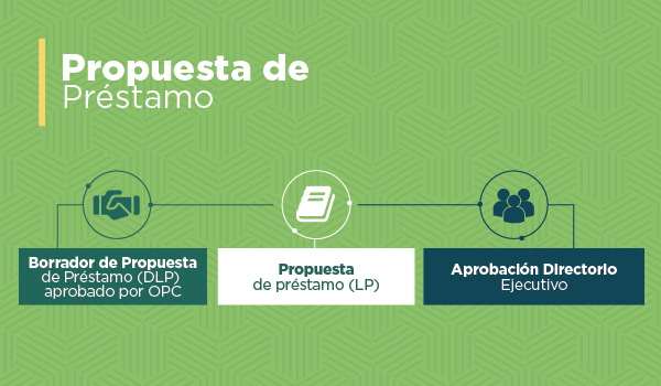 Una vez que el equipo de proyecto ha logrado el acuerdo final con sus contrapartes en el país prestatario respecto al Borrador de Propuesta de Préstamo (DLP, por sus siglas en inglés Draft Loan Proposal) —aprobado previamente por el Comité de Políticas Operativas (OPC, por sus siglas en inglés Operations Policy Committe)— el documento se convierte en la Propuesta de Préstamo (LP, por sus siglas en inglés Loan Proposal). Posteriormente la propuesta es distribuida al Directorio Ejecutivo según el procedimiento que corresponda (corto, simplificado o regular).